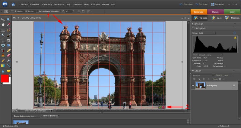 .1 :Daar had ik het in het begin al over de ruimte rond je gebouw is nu aanzienlijk kleiner geworden , dus als je kan voorzie bij het fotograferen wat meer speelruimte voor een eventuele bewerking .